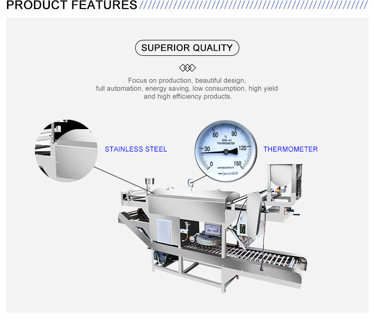 Excellent Qquanlity:easy to operate, durable Fully Automatic: with automatic pulping, steaming, slitting, cooling and collection functions Wide Applicability:Can use liquefaction, natural gas, electric heating, coal gas, etc. as heating fuel, for many choice.Energy Saving : through new energy-saving furnaces, energy-saving air ducts and insulation layers, etc., The inner tank of the water tank can fully absorb heat, so it can save energy more than 40% compared with ordinary pho processing machine.High Productivity and High Efficiency: 1kg of rice can produce 2.8~3kg of pho noodle, Vermicelli has good tolerance, fresh and white, soft and smooth