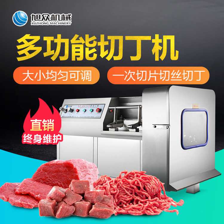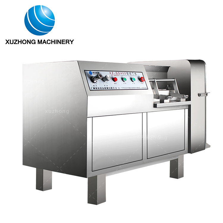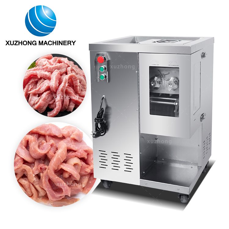 Stainless steel body design, It can cut the boneless frozen meat or fresh meat with temperature -2℃ into dice cubes,slices and strips at one time.The blade is durable,adopts of the international advanced material.just adjust the blade size ,it can be cutting into shred,slice,dice.